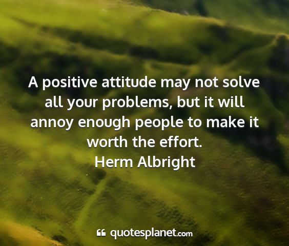 A positive attitude may not solve all your problems, but it will annoy enough people to make it worth the effort.Herm Albright