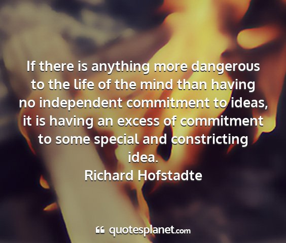If there is anything more dangerous to the life of the mind than having no independent commitment to ideas, it is having an excess of commitment to some special and constricting idea.Richard Hofstadte