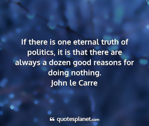 If there is one eternal truth of politics, it is that there are always a dozen good reasons for doing nothing.John le Carre