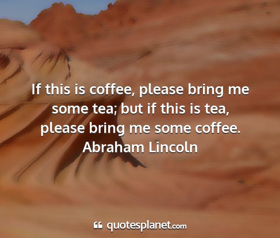 If this is coffee, please bring me some tea; but if this is tea, please bring me some coffee.Abraham Lincoln