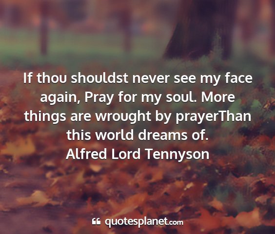 If thou shouldst never see my face again, Pray for my soul. More things are wrought by prayerThan this world dreams of.Alfred Lord Tennyson