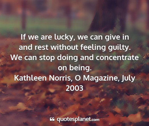 If we are lucky, we can give in and rest without feeling guilty. We can stop doing and concentrate on being.Kathleen Norris, O Magazine, July 2003