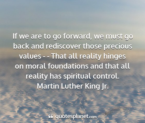 If we are to go forward, we must go back and rediscover those precious values - - That all reality hinges on moral foundations and that all reality has spiritual control.Martin Luther King Jr.