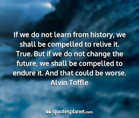 If we do not learn from history, we shall be compelled to relive it. True. But if we do not change the future, we shall be compelled to endure it. And that could be worse.Alvin Toffle