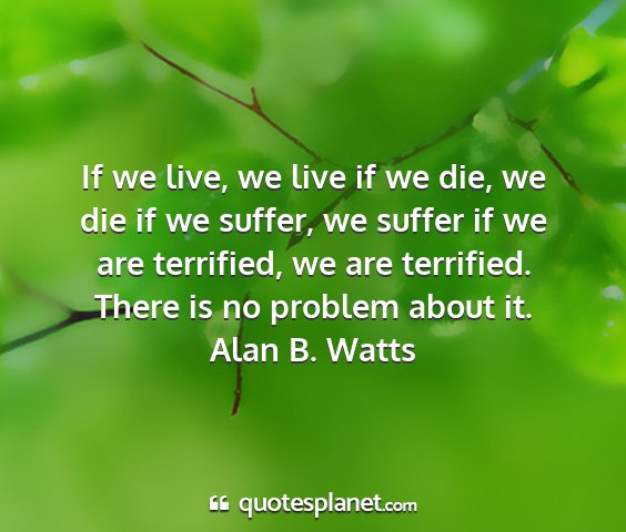 If we live, we live if we die, we die if we suffer, we suffer if we are terrified, we are terrified. There is no problem about it.Alan B. Watts