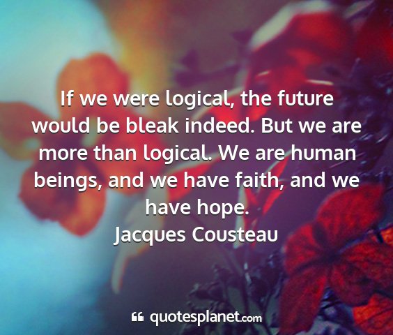 If we were logical, the future would be bleak indeed. But we are more than logical. We are human beings, and we have faith, and we have hope.Jacques Cousteau