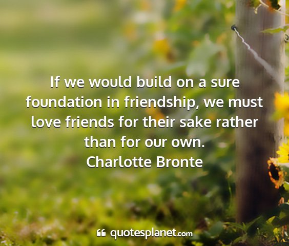 If we would build on a sure foundation in friendship, we must love friends for their sake rather than for our own.Charlotte Bronte