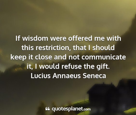 If wisdom were offered me with this restriction, that I should keep it close and not communicate it, I would refuse the gift.Lucius Annaeus Seneca