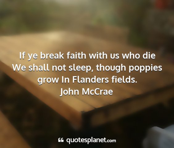 If ye break faith with us who die We shall not sleep, though poppies grow In Flanders fields.John McCrae