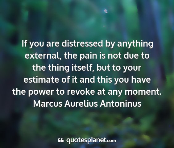 If you are distressed by anything external, the pain is not due to the thing itself, but to your estimate of it and this you have the power to revoke at any moment.Marcus Aurelius Antoninus