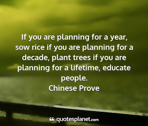 If you are planning for a year, sow rice if you are planning for a decade, plant trees if you are planning for a lifetime, educate people.Chinese Prove