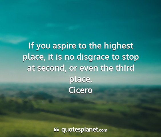 If you aspire to the highest place, it is no disgrace to stop at second, or even the third place.Cicero