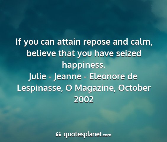 If you can attain repose and calm, believe that you have seized happiness.Julie - Jeanne - Eleonore de Lespinasse, O Magazine, October 2002