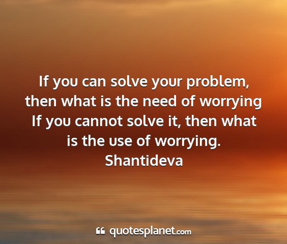 If you can solve your problem, then what is the need of worrying If you cannot solve it, then what is the use of worrying.Shantideva