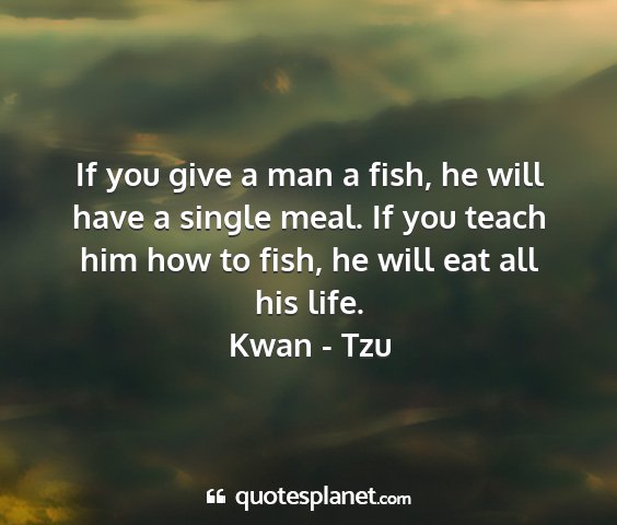 If you give a man a fish, he will have a single meal. If you teach him how to fish, he will eat all his life.Kwan - Tzu