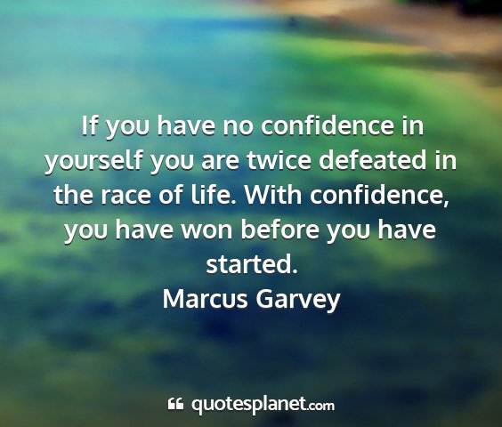 If you have no confidence in yourself you are twice defeated in the race of life. With confidence, you have won before you have started.Marcus Garvey