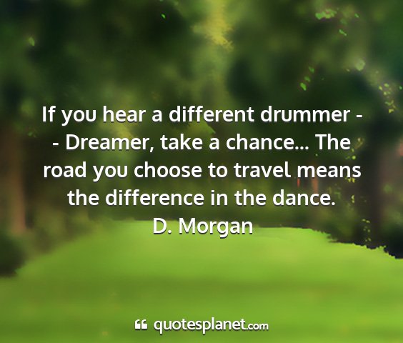 If you hear a different drummer - - Dreamer, take a chance... The road you choose to travel means the difference in the dance.D. Morgan