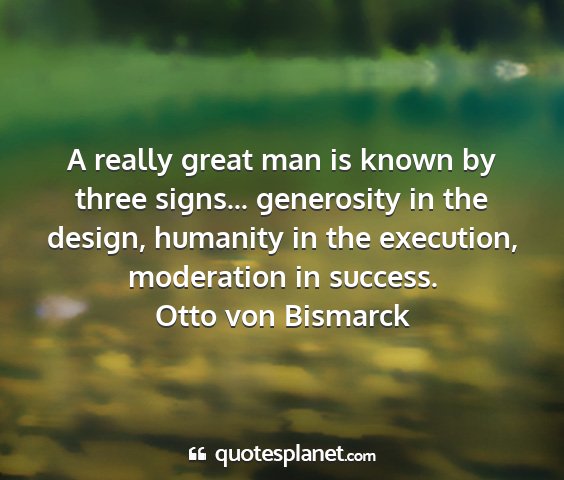 A really great man is known by three signs... generosity in the design, humanity in the execution, moderation in success.Otto von Bismarck