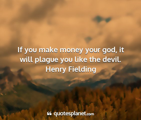 Henry fielding - if you make money your god, it will plague you...
