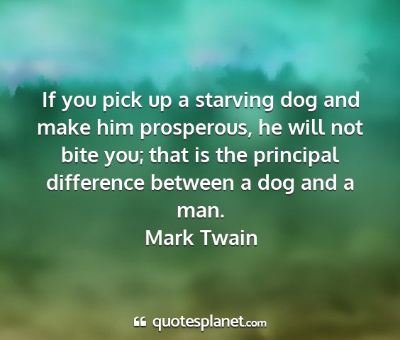 If you pick up a starving dog and make him prosperous, he will not bite you; that is the principal difference between a dog and a man.Mark Twain