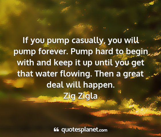 If you pump casually, you will pump forever. Pump hard to begin with and keep it up until you get that water flowing. Then a great deal will happen.Zig Zigla