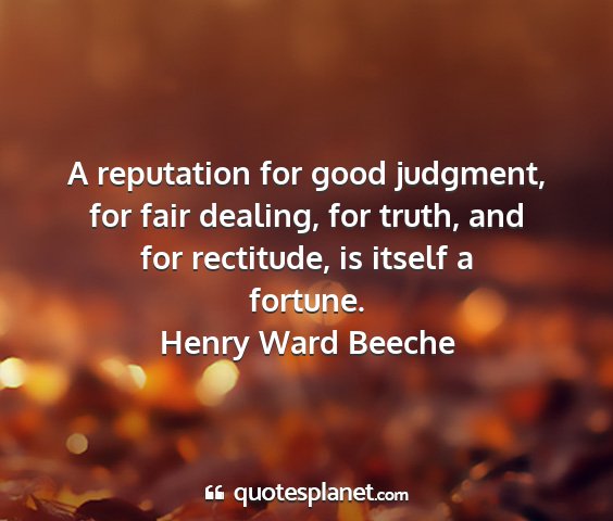 A reputation for good judgment, for fair dealing, for truth, and for rectitude, is itself a fortune.Henry Ward Beeche