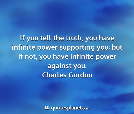 If you tell the truth, you have infinite power supporting you; but if not, you have infinite power against you.Charles Gordon