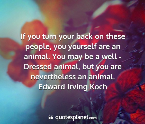 If you turn your back on these people, you yourself are an animal. You may be a well - Dressed animal, but you are nevertheless an animal.Edward Irving Koch